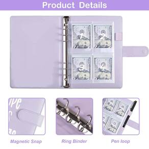 ?Material premium?O fichário de couro PU espessado é durável e resistente a arranhões, 6 anéis de aço inoxidável podem ser abertos para facilitar o acesso às páginas internas e os envelopes de dinheiro em PVC transparente são à prova d'água e à prova de rasgos, garantindo que durem durante toda sua jornada de desafios de economia.