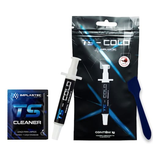 Buscando atender os exigentes usuários do crescente mercado de computadores de alto desempenho, consoles cada vez mais robustos e eletrônicos que possuem processadores com grande capacidade de processamento, a Implastec desenvolveu uma pasta térmica com a melhor tecnologia disponível, elaborando assim a Pasta Térmica TS-Cold.