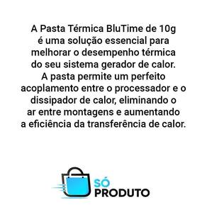A pasta térmica blu time de 10g é uma solução essencial para melhorar a performance térmica do seu sistema gerador de calor. Com sua cor branca e condutividade térmica de 2,0 w/mk, essa pasta permite um perfeito acoplamento entre o processador e o dissipador de calor, eliminando o ar entre montagens e aumentando a eficiência da transferência de calor.