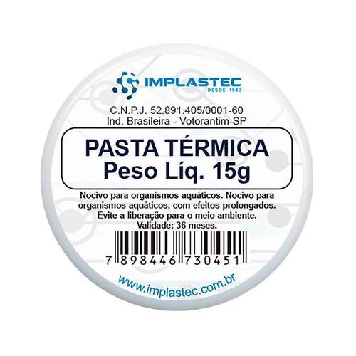 Pasta Térmica de silicone Implastec é especialmente indicada para montagens onde se exige um perfeito acoplamento entre o semicondutor e o dissipador de calor;