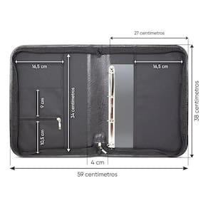 Organização Inteligente: Bolsas internas com 2 divisórias e argolas removíveis para total flexibilidade.
