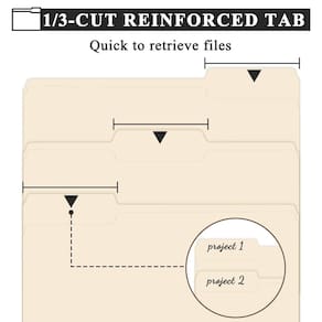 - Estrutura confiável de 14 pontos: Feito de pastas de arquivo manila 21 x 27 cm, o papel de 14 pontos oferece estrutura e flexibilidade. Essas pastas de arquivo manila suportam documentos de até 1,5 cm de espessura, garantindo que os papéis permaneçam planos. O layout de 1/3 das pastas de arquivo manila ajuda na classificação detalhada.