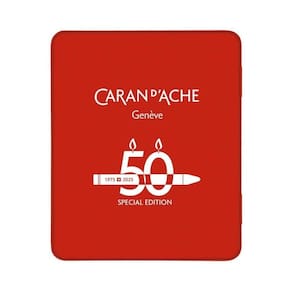 Caran d'Ache Neocolor tm II Aquarelle - Edição de 50 Anos Para celebrar meio século de criatividade, a Caran d'Ache lança cinco edições especiais do seu icônico giz de cera solúvel em água, o Neocolor tm II Aquarelle. Desde 1975, ele é a escolha de artistas por sua versatilidade e a intensidade de seus pigmentos. Cada caixa especial inclui 10 cores, sendo 3 delas novos tons criados especialmente para o aniversário, totalizando 15 novas cores exclusivas. As paletas temáticas são: Pop, Lush, Portrait, Pastel e Dark. O que o Neocolor tm II oferece Qualidade Artística: Giz de cera à base de cera solúvel em água com uma textura macia e aveludada. Cores Vibrantes: Pigmentação intensa com excelente resistência à luz. Aplicação Versátil: Pode ser em uma grande variedade de superfícies, como papel, madeira, cerâmica, metal e vidro. Embalagem comemorativa As edições vêm em uma caixa de metal vermelha icônica, com o logotipo do 50º aniversário. Cada embalagem tem um design que reflete o universo da paleta, e inclui uma cartela de cores interna. Fabricado na Suíça, este giz de cera é a escolha ideal para quem busca uma ferramenta de arte que combina tradição e inovação. Caixa com 10 Aquarelas Neocolor tm II 3 exclusive colours: 714 Amazonite, 092 Light Heliotrope, 881 Peach Blossom 7 standard colours: 141 Sky Blue, 661 Cobalt Blue 5%, 041 Apricot, 521 Sahara Yellow, 011 Pale Yellow, 231 Lime Green, 002 Silver Grey