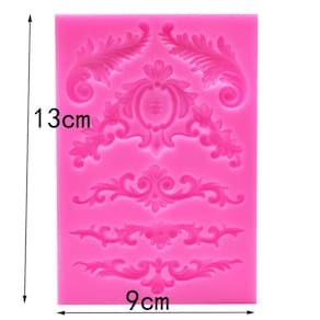 Molde de silicone flexível, adequado para decorar doces, bolos ou chocolates em forma de Arabesco. É composto por 1 peça de silicone de qualidade alimentar. Pode ser adequado para fazer essas figuras em pasta de borracha, fondant, chocolate, geleia, sorvete, artesanato e outros artesanatos. Feito de material antiaderente e fácil de limpar. Nossos silicones são feitos de material ecológico, de baixo carbono e reciclável. Ele pode suportar temperaturas entre -40 °C e 230 °C. Antiaderente, fácil de usar, desenformar e lavar: O produto é resistente à máquina de lavar louça, no entanto, é aconselhável lavar apenas com sabão e bastante água para prolongar seu uso e prazo de validade. A flexibilidade permite uma limpeza mais confortável. A cor do produto pode variar um pouco dependendo de sua disponibilidade. Devido à medição manual, pode haver uma diferença de 1 a 5 mm em comparação com as medidas mostradas na imagem. As seguintes instruções de uso podem ser úteis para você: 1. Lave e seque bem o molde de silicone e polvilhe levemente com farinha de milho para facilitar a liberação. Coloque o molde em uma superfície plana e firme. Pressione a pasta de maneira uniforme e firme no molde sem sobrecarregar. 3. Enrole a pasta no molde com um rolo. Certifique-se de que todas as áreas estejam cheias e que a base esteja plana.4. Corte o excesso de pasta das bordas com uma espátula.5. Vire o molde e solte a pasta suavemente em uma superfície limpa. Observação: as ferramentas usadas com produtos alimentícios devem ser mantidas separadas das usadas com materiais não alimentícios.
