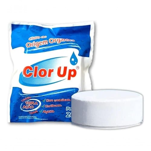 Pastilha Cloro Clor Up 200g Clor Up Tablete Tripla Ação é um cloro de alta concentração, em tabletes de 200 gramas, especialmente desenvolvidos a base de Tricloro S-Triazina Triona de Sódio.Vantagens:Tripla Ação: Cloro Estabilizado, Clarificante e tablete mais concentrado do mercado, possui 99,5% de material tablete purifica até litros de água e dura aproximadamente 15 ção contínua, automática e prolongada a partir de sua dissolução para tratamentos semanais ou quinzenais, ou para clientes que não possuem tempo para tratamento diáão deixa resíduos, 100% solúém estabilizador de cloro, que impede a degradação do cloro pelos raios ser tanto em sistemas automatizados como em flutuadores ções de Uso:Usar luvas plásticas durante o manuseio;Nunca misturar hipoclorito de cálcio com dicloro e tricloro. São produtos incompatíveis e podem resultar em fogo ou explosão;Nunca agite as misturas em recipientes fechados, pois há risco de explosão;Evite do produto concentrado com a pele e com os olhos;Dissolver somente em água;Não utilizar cloro granulado e algicidas à base de sulfato de cobre no mesmo dia. Isso pode causar manchas na ão reutilize a embalagem vazia. E lave-a antes de descartá-la;Guardar a embalagem em fresco e arejado com temperatura ambiente. Marca: Não Informado