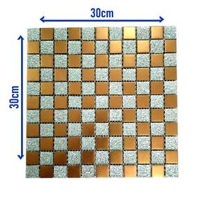 Transforme seus ambientes com esta pastilha decorativa feita de vidro verdadeiro, combinando brilho, textura e um visual moderno. O design em padrão geométrico cria um efeito visual sofisticado, com peças retangulares em tom dourado e detalhes texturizados que adicionam profundidade e requinte.