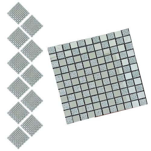 Transforme seus ambientes com esta pastilha decorativa feita de vidro verdadeiro, combinando brilho, textura e um visual moderno. O design em padrão geométrico cria um efeito visual sofisticado, com peças retangulares em tom prata e detalhes texturizados que adicionam profundidade e requinte.