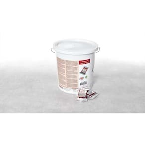 - Ref: N: 56.00.210 - Pastilhas de detergente: balde com 100 unidades. - Peso: 6 Kg; - Medidas: 28x28x28.