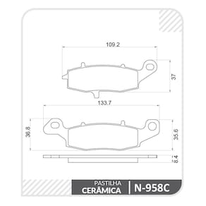 Especificações Técnicas - Linha Racing Extreme; - Posição dianteira; - Pastilha de cerâmica; - Dimensões 108,2 x 43,6 x 8,4 mm / 133,7 x 36,8 x 8,4 mm; - Código do fabricante: N-958C; - Número original (OEM): 43082 1178