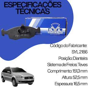 A SYL 2186 é utilizada no eixo dianteiro e possui ampla compatibilidade na linha Fiat, atendendo aos seguintes modelos (varia conforme versão e ano, sendo recomendável confirmar pelo sistema de freio):