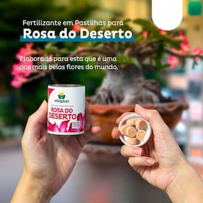 Descrição * Basta colocar uma pastilha na terra, próximo à borda do vaso e regar. * Possui a liberação de nutrientes de forma lenta e segura, evitando a hipervitaminose que poderia prejudicar a sua planta. * Rica em fósforo que favorece o crescimento saudável do caudex e a boa evolução da sua rosa do deserto Características * Natureza Física························································· Pastilha * Peso Líquido: Embalagem de 50g
