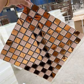 Transforme seus ambientes com esta pastilha decorativa feita de vidro verdadeiro, combinando brilho, textura e um visual moderno. O design em padrão geométrico cria um efeito visual sofisticado, com peças retangulares em tom prata e preto e detalhes texturizados que adicionam profundidade e requinte.