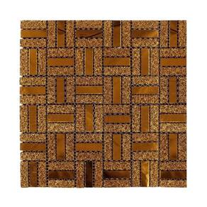 Transforme seus ambientes com esta pastilha decorativa feita de vidro verdadeiro, combinando brilho, textura e um visual moderno. O design em padrão geométrico cria um efeito visual sofisticado, com peças retangulares em tom dourado e detalhes texturizados que adicionam profundidade e requinte.