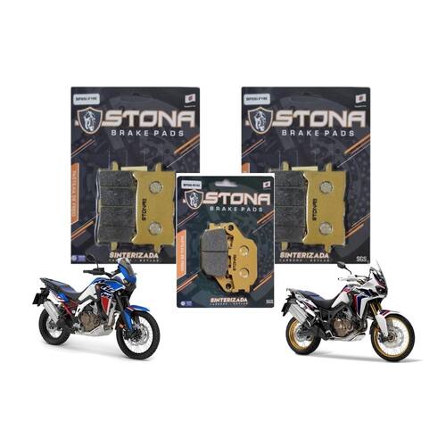 KIT COMPLETO PASTILHAS STONA SINTERIZADA KEVLAR E CARBONO APLICAÇÃO -CRF 1000L Africa Twin 2016-2020 / Adventure Sports 2018-2019 -CRF 1100L Africa Twin 2020- / Adventure Sports 2020-2021 Itens inclusos: 03 pares de pastilhas para 3 discos de freio Produzida através do processo de sinterização originado pela composição de pós metálicos Entre eles cobre aço, Bronze, Cerâmica, Grafite, CARBONO E KEVLAR compactado por pressão Submetido a temperatura elevada ligeiramente menores que sua temperatura de fusão Este processo cria uma peça única e sólida, Formando um bloco homogêneo da massa, Aplicado a uma placa de aço carbono. Desenvolvida por engenheiros japoneses e fabricado na China. -Excelente desempenho. -Maior tolerancia as altas temperaturas em frenagens longas e curtas. -Aquecimento rápido e frenagem precisa e mais segura. -Maior segurança em dias de chuva -Baixo ou nenhum ruido -Oferece maior durabilidade. -Efeciencia e sensibilidade durante a frenagem. -Menor desgaste do conjunto pastilhas e discos. -Economia e menor esforço para o sistema de freio. -Ref Dianteira Ap Racing 540SF / Traseira 257 Com duvidas? Nos escreva que te responderemos o mais rápido possível! Codigo do produto: 2x SKU 2461 PASTILHA STONA SINTERIZADA F190 - 02 CARTELAS 1x SKU 2356 PASTILHA TRASEIRA SINTER R103
