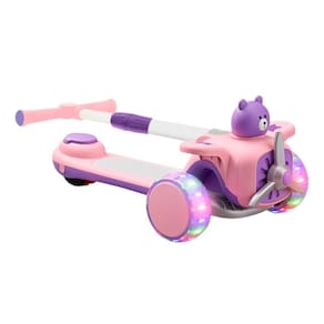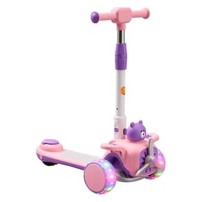 Patinete Aviãozinho Feliz Infantil 3 Rodas Dobrável com Luz Led Som DM Toys DMR6816 Rosa Patinete Aviãozinho Feliz DM Toys