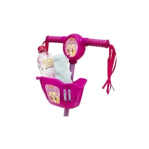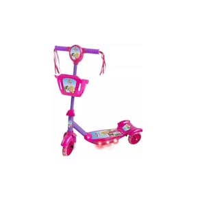 Patinete com cestinha e com lindo desenho exclusivo DM TOYS Sonho de Princesa. Ele acende luz na base e emite som musical. Possui duas rodas traseiras, o que dá mais estabilidade para a criança que ainda está aprendendo a andar.