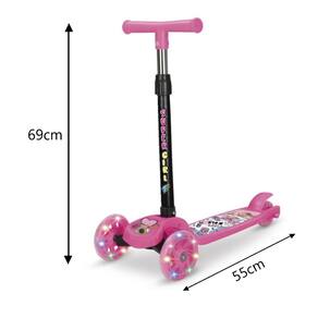 O Patinete Infantil Super Girl da ETITOYS é perfeito para a diversão segura das crianças! Fabricado em aço inox e policloreto de vinil, é resistente e leve. Conta com 3 rodas (sendo 2 dianteiras e 1 traseira), todas com luzes que acendem ao girar, garantindo muito mais estilo e segurança.