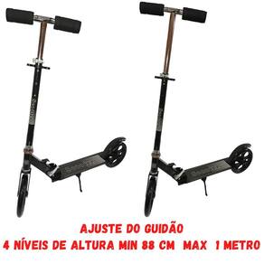 O patinete se adapta à altura da pessoa que está utilizando, possui um guidão ajustável 4 Níveis de altura sendo o min 88 cm e max 1 metro Tem um freio na roda traseira, fácil de usar para frear ou diminuir a velocidade. Totalmente seguro para quem está utilizando.