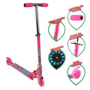 - Design dobrável: fácil de carregar e guardar - Altura ajustável: 3 níveis de regulagem para acompanhar o crescimento da criança - Rodas com luzes: mais diversão e estilo enquanto anda - Trava de segurança: garante mais estabilidade e proteção durante o uso - Freio traseiro: controle eficiente e seguro da velocidade - Manoplas com espuma: maior conforto nas mãos