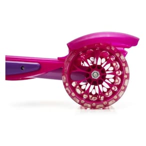 - Acende luzes nas laterais e toca música com botão embaixo do patinete. (Funcionamento da luz e som com 3 pilhas AA não inclusas);