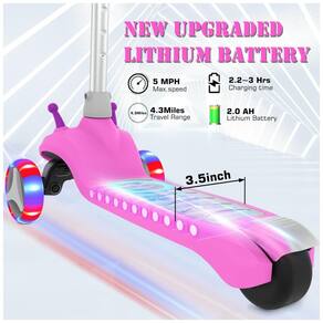 As rodas piscantes divertidas com LED são alimentadas por um sistema autogerado, que acenderá automaticamente as rodas quando seus filhos começarem a andar e não houver necessidade de bateria. As luzes LED coloridas no volante que brilham e se destacam proporcionam mais diversão para a criança brincar, o que também é uma garantia de segurança para andar à noite. A Scooter Elétrica Infantil possui 3 alturas ajustáveis e 3 guidões ajustáveis, além de um pedal extralargo que acomoda uma carga máxima de 50 kg.