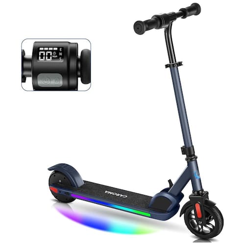 A scooter elétrica Caroma é perfeita para crianças de 8 a 12 anos que desejam se divertir com segurança. Com cinco opções de cores disponíveis, a scooter vem equipada com pedais coloridos que não apenas tornam a condução elegante e divertida, mas também melhoram a visibilidade e a segurança na estrada. A scooter possui um motor potente de 150 W e três modos de velocidade, permitindo que você ajuste a velocidade máxima de 8 km/h, 12 km/h ou 16 km/h de acordo com sua preferência e condições de pilotagem.