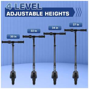 Além disso, a scooter é ajustável em três alturas para acomodar diferentes alturas e é leve e dobrável, tornando a muito fácil de transportar e armazenar.