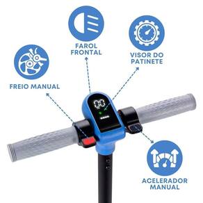 Patinete elétrico infantil kids brinovar Os nossos patinetes elétricos infantis são uma ótima maneira de combinar diversão e mobilidade para as crianças. Eles oferecem uma experiência empolgante enquanto ajudam no desenvolvimento e no equilíbrio dos pequenos, além de incentivarem as crianças a passarem mais tempo ao ar livre. Especificações técnicas: Marca: brinovar Cor: azul Bluetooth integrado: sim, escute suas músicas no patinete Led: parte superior, lateral e farol Painel com indicador de bateria Sensor de velocidade Sistema de equilíbrio dinâmico Sistema de controle servo Max velocidade: 8 km/h depende do peso do cliente, condições das estradas, etc Média de peso mínimo e máximo suportado: 20 à 60 kg Peso do produto: 8 kg Maior potência: 110w Bateria 24v 2.5ah bateria de lítio Tensão de carregamento: bivolt Tempo de carregamento: aproximadamente 120-180 minutos Tamanho: 88 x 80 x 37 cm Tamanho do pneu em medidas: diâmetro 16cm x 4,5 espessura Material do pneu: borracha : 90 dias Itens inclusos: 1 patinete infantil 1 carregador padrão bivolt 2 chave allen 4 parafusos 1 manual do usuário O desempenho do equipamento e duração da bateria pode variar dependendo do peso do cliente, condições das estradas, etc . Marca: Não Informado