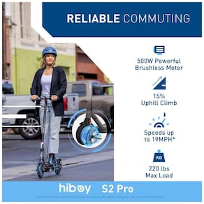 Atualize seu deslocamento As scooters elétricas Hiboy S2 Pro roda dianteira e traseira equipadas com pneus sólidos de e amortecedores traseiros duplos proporcionam conforto máximo, mesmo em superfícies ásperas ou lombadas.