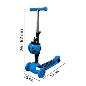Medidas do patinete: 76 x 23 x 53 cm (altura x largura x profundidade)