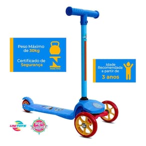 Patinete Infantil Articulado 3 Rodas Com Freio e Altura Fixa - Unitoys A criançada vai adorar brincar e desenvolver seus movimentos e se divertir muito. O Patinete Articulado Infantil da Turma da Aventura estimula a atividade física e auxilia no equilíbrio, é ideal para ser levado durante os passeios e assim promover a diversão dos pequenos. Super prático, fácil de montar e desmontar para transportar, design moderno e cores vibrantes, com três rodas e também freio traseiro, super seguras para garantir a máxima diversão e tranquilidade para seus pais.