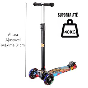 Especificações: - Marca: Dm Toys - Código de barras: 7899205968627 - Modelo: DMR6862 - Idade recomendada: a partir e 06 anos - Dimensões do Patinete Aproximadas (CLA): 56 x 25 x 81 cm - Altura ajustável até 81 cm - Sistema de freio traseiro - Material: Ferro, Nylon, Plástico - Rodas PP+ PU com luz: dianteira 120 mm, traseiras 80 mm - Com Luzes nas Rodas - Peso máximo suportado: 40 Kg