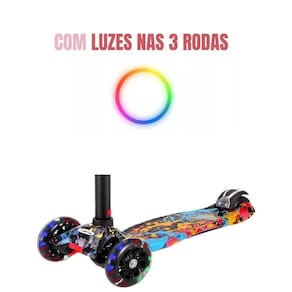 Uma característica especial do Patinete Flash Radical são as luzes nas rodas. As rodas iluminadas criam um efeito incrível quando estão em movimento, adicionando um toque de brilho e diversão aos passeios. Seu filho vai adorar deslizar com estilo e se destacar entre os amigos.