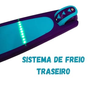 Tem um freio na roda traseira, fácil de usar para frear ou diminuir a velocidade quando necessário.