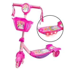 Patinete Menina Cestinha Unicórnio Led Radical Até 35Kg Rosa