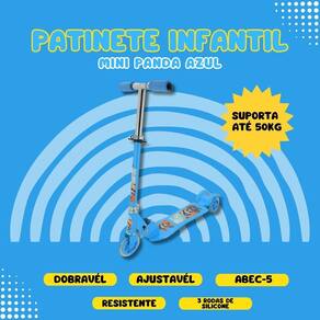 Patinete panda infantil dobrável ajustável azul com 3 rodas Diversão com estilo e segurança