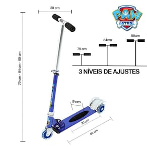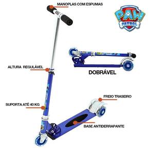 Patinete Patrulha Canina 3 Rodas Infantil Azul De Alumínio