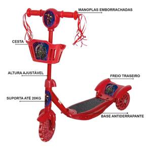 Patinete Radical Vermelho Vingadores Para Crianças Cestinha