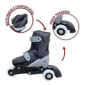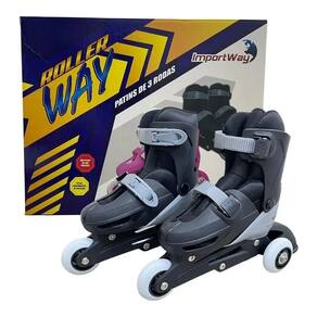 Patins Adulto infantil Ajustável 2 Em 1 Importway Preto 3 Rodas