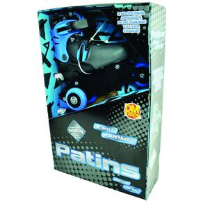 Patins infantil 2 em 1 tamanho ajustável do 31 ao 34 - azul A diversão está cada vez mais legal e radical eles são todos coloridos, além de serem ajustáveis do tamanho 31 até o 34. Suporta até 50kg e você pode mudar a posição das rodinhas para quando você estiver aprendendo a andar. Faça vários passeios divertidos e cheios de aventuras Ele permite duas diferentes configurações, com 2 rodas atrás e 1 na frente, proporciona mais equilíbrio e segurança à criança após conquistar esse equilíbrio, o patins pode ser ajustado para o modo clássico inline (3 rodas enfileiradas), incitando um novo desafio aos pequenos. Informações técnicas Idade mínima recomendada: + 6 anos Peso máximo do usuário suportado pelo aparelho: 50 kg Dimensões aproximadas o produto: altura do chão até a base: 10 cm / altura do chão até o calcanhar: 12 cm / produto inteiro 30cm altura x 30cm comprimento Dimensão da palmilha: tamanho 31 ao 34cm -19cm a 22cm Dimensões da embalagem (axlxc): 49cm x 12cm x 33cm Fechamento: fivela Cor: azul Luz e som: não Tipo: 3 rodas Base: pvc Tamanho e material da roda: 72mm polipropileno Composição: plástico Freio: traseiro - nos 02 pés Perfil do praticante: crianças Referência: dm-5873 Tamanho: 31 ao 34 Itens inclusos na embalagem: 01 par de patins / 02 chaves allen / 04 parafusos 04 arruelas. Imagens meramente ilustrativas