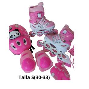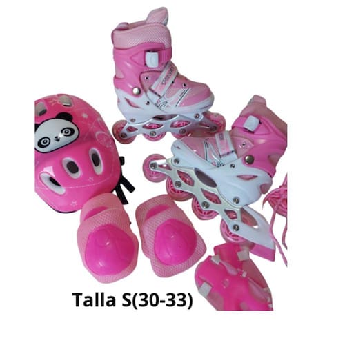 Patins lineares de alta qualidade. Ajustável em 3 medidas, tamanho S (30-33) na cor rosa, ideal para começar no mundo da patinação. As rodas são feitas de silicone resistente, roda principal com luz LED ativada ao começar a patinar. AS PROTEÇÕES INCLUEM: capacete, joelheiras, cotoveleiras, proteções para as mãos. - Roda dianteira com luz LED. - Plástico de alta resistência. - Suporte de segurança em alumínio, desempenho confiável. - Ajustável com facilidade. - Inclui ferramentas de reparo (chave tipo L para ajustar as rodas). - Rodas de silicone. - Proteção tripla: fivela, forte e corda para sapatos. “IMPORTANTE SABER” Os patins trazem um botão para o lado que é mantido pressionado. Portanto, com a outra mão, jogue o peito do pé para fora ou para dentro, de acordo com sua necessidade de tamanho. TAMANHO S (30-31-32-33)