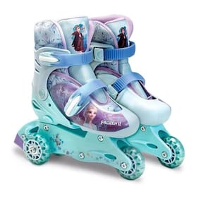 Patins Frozen 3 rodas Ajustável 29 ao 32 e Acessórios F00170 - FUN Para quem já é fã da linha de brinquedos Frozen, olha só o que a Fun trouxe com exclusividade. Esse patins em lindo tom de Azul, decorados com o charme e a marca Frozen, é tudo o que as meninas querem para passear com bastante estilo. Mas o Patins da Frozen 3 rodas não é só beleza, não. É de ótima qualidade também. Feito em PVC, um material bastante resistente, seu interior está equipado com um bota acolchoada muito confortável. Ele é todo afivelado, permitindo um encaixe perfeito nos pés. E mais, ele cresce com a criança, sendo perfeitamente ajustável para cada variação de tamanho. E depois que a criança aprender bem a andar, é só transformar o patins de 3 para 4 rodas in line. Além disso, este patins vem com dispositivo que permite 4 ajustes de tamanho (tamanhos 29, 30, 31 e 32). E olha que legal: o patins já vem com itens de segurança: capacete, cotoveleira e joelheira (acessórios não profissionais). As fotos são ilustrativas. Tonalidades das cores podem variar. Conteúdo da embalagem: 01 Patins Frozen ajustável para os números 29 ao 32. 01 Capacete. 01 kit Cotoveleira. 01 kit Joelheira. 02 Roda extra (para converter o patins de 3 para 4 rodas inline). 01 Chaves Allen. 04 Parafusos e porcas. Manual de Instruções na caixa do patins. Características: Idade Recomendada: A partir de 3 anos. Cor Predominante: Azul. Personagem: Frozen. Tamanho Ajustável: Para os tamanhos 29 ao 32 Material: PVC, poliéster e alumínio Rodas Material: Emborrachado Garantia: 3 meses Tipo de Terreno Apropriado: Piso Pavimentado e sem trânsito de carros Inmetro: 02115-000