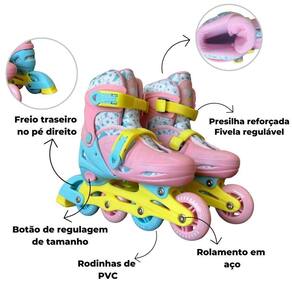 - produto certificado pelo inmetro e projetado com materiais de alta qualidade garantindo o conforto e agilidade necessária para manobras. - os patins também contam com sistema de rodas estáveis e duas presilhas reforçadas para uma melhor estabilidade dos pés. - freio traseiro para controle de velocidade, cano flexível e sistema de ajuste para se adequar ao tamanho - o produto acompanha um kit completo de segurança composto por um capacete, joelheiras, cotoveleiras e luvas de proteção - faixa etária recomendada: acima de 4 anos - peso máximo: 45 kg - corpo em polipropileno com bota interna em tecido forrado com espuma - alta absorção de impacto - fecho em metal e presilha polipropileno.