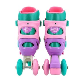 PATINS MULTI USO ROSA TAMANHO 30 AO 33 (S) 1505 UNI TOYSO Patins 3 em 1 da Turma da Aventura “4 rodas” é versátil, e pode ser modificado do modelo In Line para o modelo Tri Line e auxilia no equilíbrio e coordenação motora da criançada em seu primeiro contato com o esporte de rodas, conta com o kit de proteção que protegerá a criançada ao aprender. Seu tamanho que varia de 30 ao 33 serve para que a criança se divirta com os patins por um tempo maior, com cores vibrantes e super seguras para garantir a máxima diversão e tranquilidade para seus pais.- Tamanho ajustável: 30 a 33- Kit de proteção para cotovelos e joelhos + Capacete- Tamanho ajustável- Rodas de PVC- Certificado de segurança INMETRO- Freio traseiro- Quatro rodas (auxilia no equilíbrio)DIMENSÕES:- Tamanho Caixa: 37 x 29 x 21cm- Peso da embalagem: 2,3kgITENS INCLUSOS:- 01 Patins Multiuso 1505 Rosa Uni Toys- 01 Capacete de proteção- 01 Par de joelheira- 01 Par de cotoveleiras