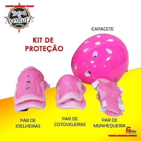 - acompanha um kit completo de segurança composto por um capacete, joelheiras, cotoveleiras e munhequeiras.