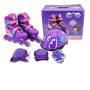 Patins infantil roxo com kit de proteção tamanho 33 ao 37 Atenção comprar dois números acima do que se usa de tenis Peso max: 45kg