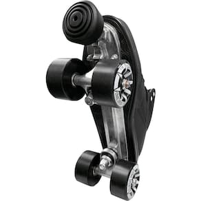 imagens meramente ilustrativas - Truck de alumínio injetado sob pressão. - Eixo do Truck em Aço Carbono 1045. - Base em Polyamide 6 PA 6 30GF Glass Fiber Reinforced. - Rodas em Polyurethane Shore 90A. - Porcas Autotravantes e parafusos em aço. - Rolamentos ABEC 9. - Amortecedores em TPU Shore 80A. - Sola da Bota em PVC Shore 85A. - Bota em tecidos sintéticos.