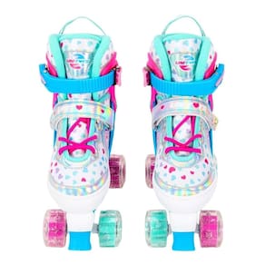 O Patins Quad Infantil Ajustável é perfeito para proporcionar diversão, segurança e incentivar a prática de atividades físicas desde cedo. Com design moderno holográfico e luzes em todas as 4 rodas, ele encanta as crianças e garante mais visibilidade durante o uso.