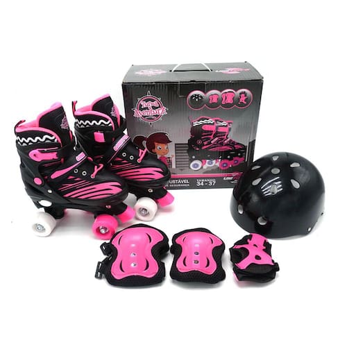Patins Quad Kit Uni Toys Rosa e Preto com Kit de Proteção Tamanho 30 ao 33 Cor Preto Pink