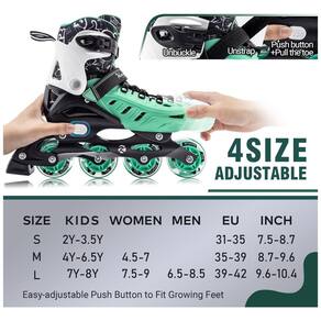 TAMANHO AJUSTÁVEL: Verifique nossa tabela de tamanhos na imagem do produto para garantir a escolha do par correto. Com um simples botão de ajuste facilita e torna conveniente a adaptação a diferentes tamanhos, garantindo anos de diversão. Não é mais necessário se preocupar com o crescimento dos pés do seu filho.